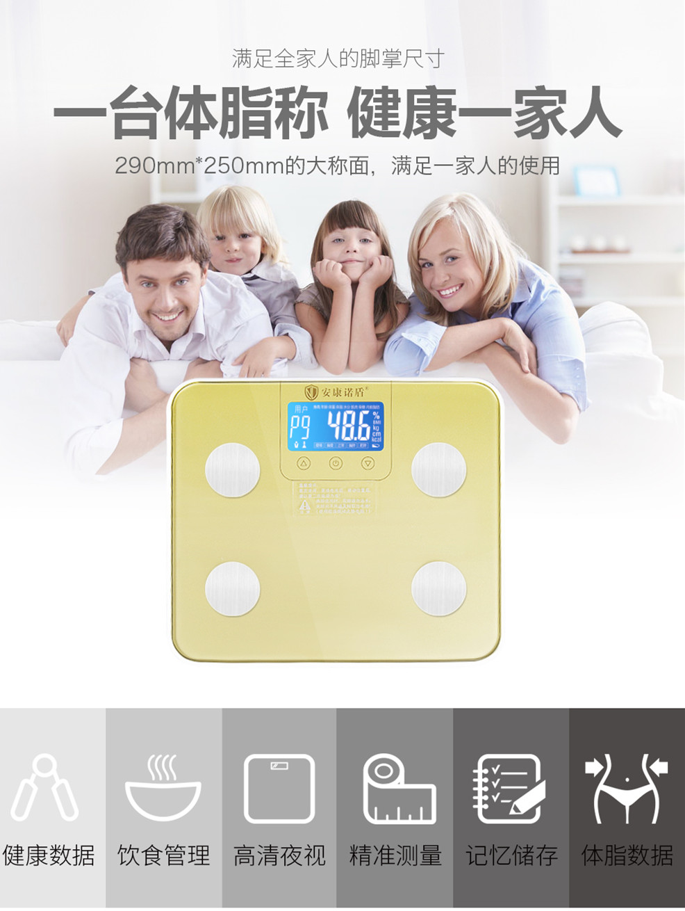 諾盾最新研發(fā)家庭健康體脂稱,讓你全面了解自己身體的各項數(shù)據(jù),健康生活每一天!
