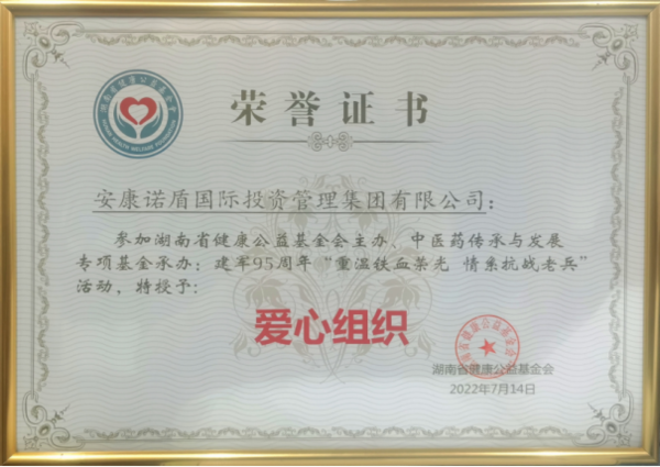 ▲安康諾盾集團(tuán)被評為“愛心組織”