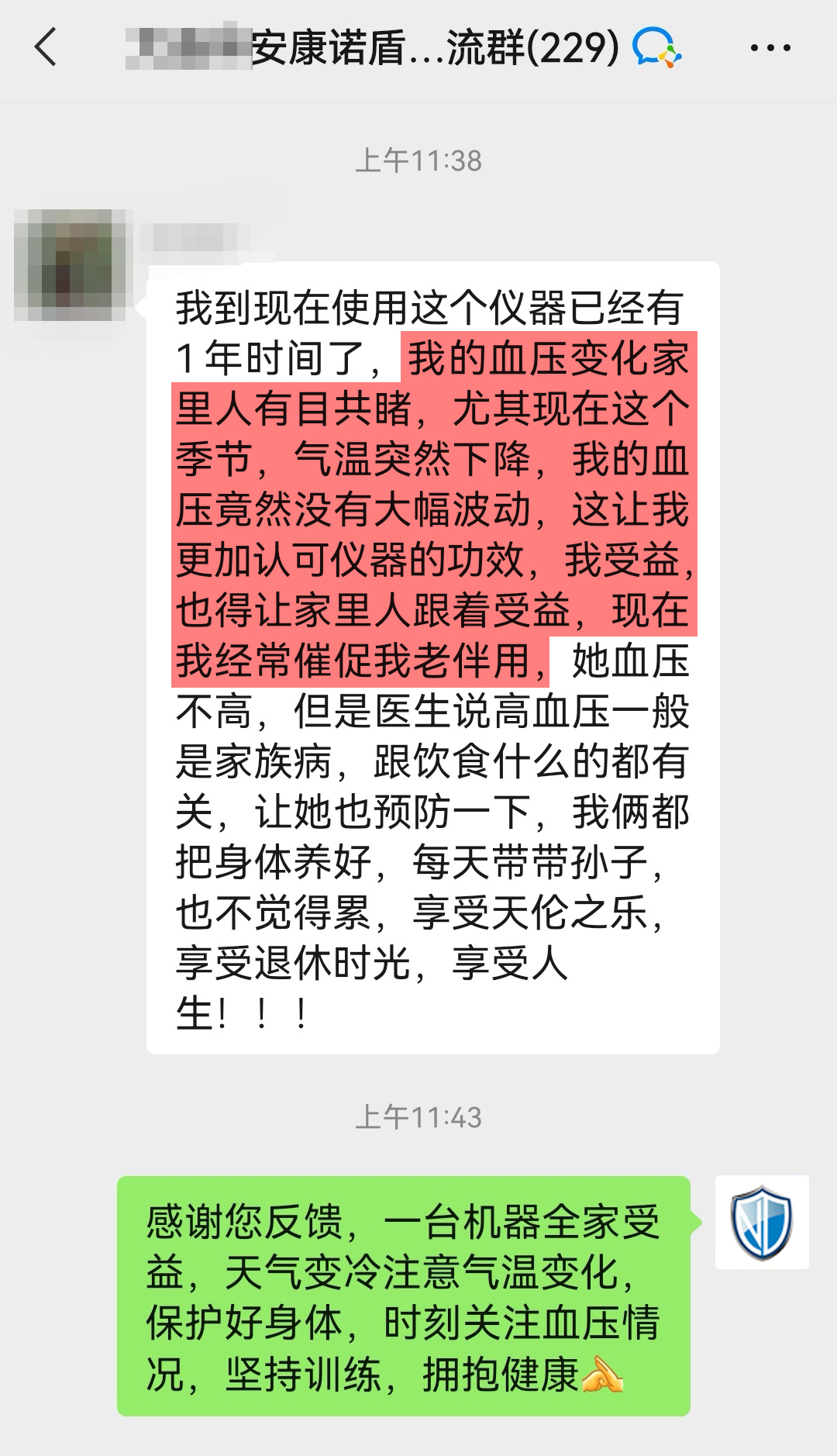 安康諾盾集團(tuán)本著愿天下人人安康的宗旨,投入大量經(jīng)費(fèi),研發(fā)出安康諾盾預(yù)適應(yīng)訓(xùn)練儀,使用過的用戶紛紛給出了好評(píng)并推薦給家人、朋友。